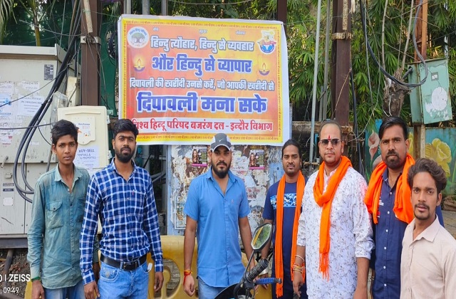 दीपावली पर इंदौर में लगे “हिंदू त्यौहार, हिंदू से व्यवहार और हिंदू से व्यापार”,VHP और बजरंग दल की मुहीम