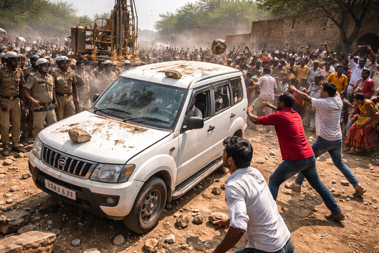 जैसे ही खेतों में ड्रिलिंग मशीन खड़ी की गई, ग्रामीणों ने सड़क पर बैठकर पुलिस और प्रशासनिक काफिले को रोक दिया। देखते ही देखते स्थिति तनावपूर्ण हो गई और आक्रोशित भीड़ ने अधिकारियों की गाड़ियों और मशीनों पर पथराव शुरू कर दिया। हालात बिगड़ते देख प्रशासनिक टीम को बिना सर्वे किए वापस लौटना पड़ा। घटना के बाद इलाके में तनाव का माहौल बना हुआ है और पुलिस हालात पर नजर बनाए हुए है।