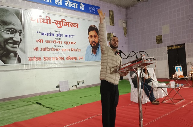 बता दें कि महात्मा गांधी जी की 78वीं पुण्यतिथि के अवसर पर अंबिकापुर में रेहाना फाउंडेशन के तत्वाधान में एक भव्य शांति मार्च और गांधी सुमिरन कार्यक्रम आयोजित किया गया। इस कार्यक्रम का उद्देश्य महात्मा गांधी के विचारों और आदर्शों को जन-जन तक पहुंचाना और उनके सत्य, अहिंसा, और शांति के मार्ग पर चलने का संदेश देना था। कार्यक्रम में उपस्थित लोगों ने गांधी जी के आदर्शों को अपनाने और उनके बताए हुए मार्ग पर चलने का संकल्प लिया। इस अवसर पर मनरेगा और जनतंत्र की सुरक्षा पर भी चर्चा की गई, जिसमें कन्हैया कुमार ने कहा कि आज की सरकार जनतंत्र की इस व्यवस्था को गन तंत्र, लाठी तंत्र में बदलना चाहती है। उन्होंने कहा कि हम ऐसा अमीर देश बन रहे हैं जहां की जनता 5 किलो अनाज के लिए लाइन में लगती है। ये लोग जंगल, जमीन लूटने के बाद संविधान लूट लेंगे। वोट चोरी से बनी सरकार आपके अधिकार चोरी करेगी। मनरेगा का बजट कम कर दिया और कहते हैं 100 नहीं 125 दिन रोजगार देंगे, कैसे देंगे? इस कार्यक्रम में सैकड़ों की संख्या में गांधीवादी नागरिक और युवा शामिल हुए, जिन्होंने महात्मा गांधी के विचारों को याद किया और उनके मार्ग पर चलने का संकल्प लिया।