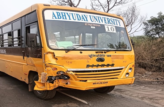 खरगोन (रामेश्वर बड़ोले) : मध्य प्रदेश के खरगोन जिले में उस समय सड़क खून से रंग गई जब अभ्युदय विश्वविद्यालय की तेज रफ्तार बस ने बाइक को जोरदार टक्कर मार दी। टक्कर इतनी जबरदस्त थी कि बाइक पर सवार परिवार उछलकर दूर जा गिरा और एक साथ तीन लोगों की मौत हो गई, जबकि एक मासूम घायल हो गई। हादसा इतना भीभत्स था कि सड़क पर खून ही खून था और लाशें बिखरी पड़ी दिखी।