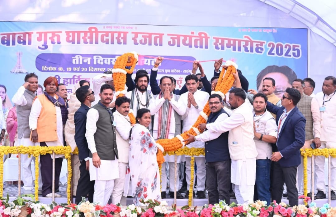 मुख्यमंत्री श्री साय ने सरकार की उपलब्धियों का उल्लेख करते हुए बताया कि दो वर्षों में प्रधानमंत्री श्री नरेंद्र मोदी की अधिकांश गारंटियों को पूरा किया गया है। प्रदेश में 18 लाख प्रधानमंत्री आवास स्वीकृत किए गए हैं। समर्थन मूल्य पर धान खरीदी को सर्वोच्च प्राथमिकता दी जा रही है और किसानों को अंतर की राशि शीघ्र उनके खातों में अंतरित की जाएगी। उन्होंने कहा कि धान का रकबा और किसानों की संख्या बढ़ना सरकार की नीतियों पर किसानों के विश्वास को दर्शाता है। मुख्यमंत्री ने बताया कि महतारी वंदन योजना से 70 लाख से अधिक महिलाएं लाभान्वित हो रही हैं, जिससे उनकी आर्थिक आत्मनिर्भरता सुदृढ़ हुई है। पीएससी भर्ती प्रक्रिया में पारदर्शिता लाई गई है तथा नई औद्योगिक नीति के माध्यम से युवाओं को उद्यमी बनने के अवसर दिए जा रहे हैं। उन्होंने सभी वर्गों से संत गुरु घासीदास जी के विचारों को आत्मसात कर विकसित छत्तीसगढ़ के निर्माण में सहभागी बनने का आह्वान किया। इस अवसर पर कैबिनेट मंत्री और गुरु घासीदास जी के वंशज गुरु खुशवंत साहेब ने कहा कि बाबा गुरु घासीदास जी का संदेश केवल सतनामी समाज के लिए नहीं, बल्कि सम्पूर्ण मानवता के लिए है। उन्होंने कहा कि ‘मनखे-मनखे एक समान’का विचार सामाजिक समरसता और भाईचारे की मजबूत नींव है। बाबा जी द्वारा दिए गए जैतखाम, सादा झंडा, चौकोर चबूतरा और सादा जीवन के संदेश आज भी मानव जीवन को दिशा देते हैं।