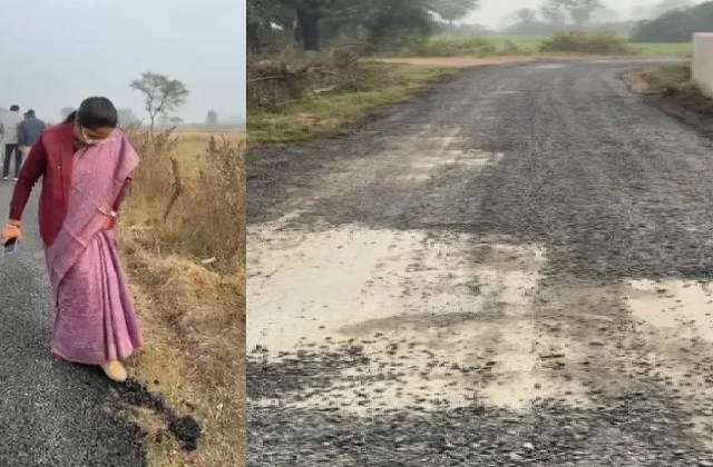 करप्शन का हर पैमाना पार, मंत्री के निरीक्षण में पैर की ठोकर से उखड़ी नई सड़क, कार्यपालन यंत्री को फटकार, ठेका निरस्त