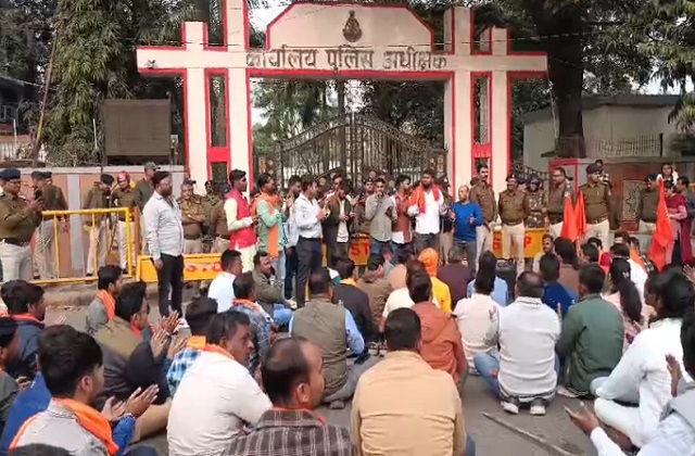 जबलपुर( विवेक तिवारी):संस्कारधानी जबलपुर में साधु संत सड़कों पर उतर गए हैं। हिन्दू देवी देवताओं पर किताबों में लिखी आपत्तिजनक टिप्पणी के खिलाफ उनका आक्रोश फूट पड़ा है। संतो ने पुलिस अधीक्षक कार्यालय के बाहर प्रदर्शन करके विरोध जताया है।