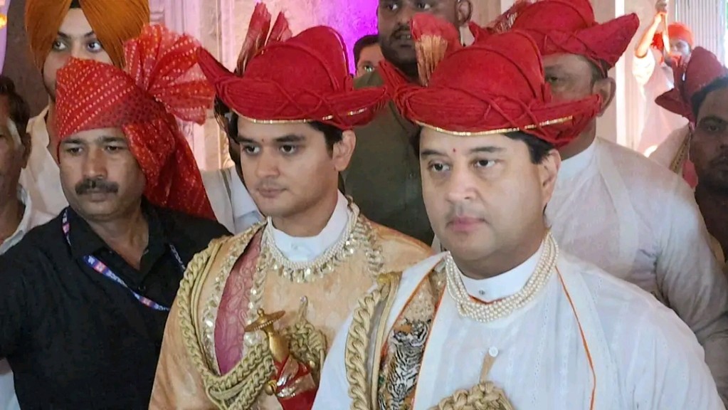 Scindia का Royal Look: शाही पोशाक, बेटे संग तलवार हाथ में लेकर निकले, देखें तस्वीरें