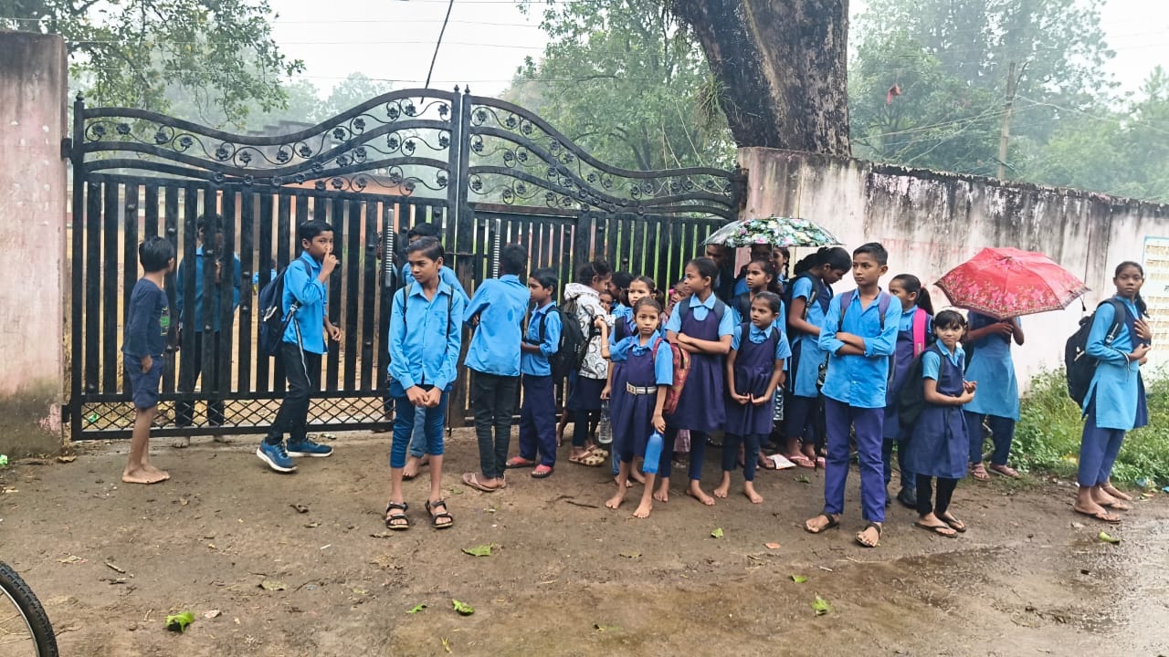 सुबह स्कूल पहुंचने पर छात्रों ने देखा कि स्कूल गेट पर ताला लगा हुआ है। शिक्षक के न पहुंचने से बच्चे स्कूल के बाहर ही खड़े रहे। लगातार बारिश के बावजूद बच्चे गेट के बाहर भीगते हुए इंतजार करते रहे।