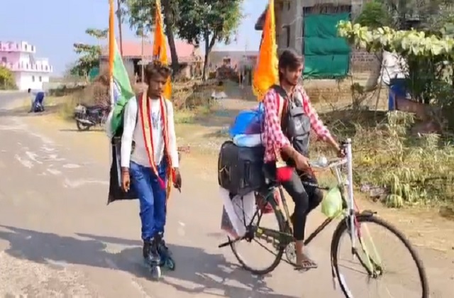 बुधवार को दोनों युवा ओंकारेश्वर ज्योतिर्लिंग दर्शन करते हुए जिले के सेंधवा पहुंचे। उत्तर प्रदेश के गांव पेडरा के रहने वाले सूर्या प्रकाश और कन्हैया निषाद दोनों 19 साल के है। सूर्या ने बताया कि 29 अक्टूबर को उन्होंने अपनी यात्रा शुरू की थी.. अब तक 2 हजार किमी का सफर तय करते हुए उज्जैन महाकाल और ओंकारेश्वर ज्योतिर्लिंग के लिए दर्शन कर लिए हैं..अब महाराष्ट्र के नाशिक में स्थित त्रयंबकेश्वर महादेव ओर घृष्णेश्वर महादेव के दर्शन के लिए जा रहे..